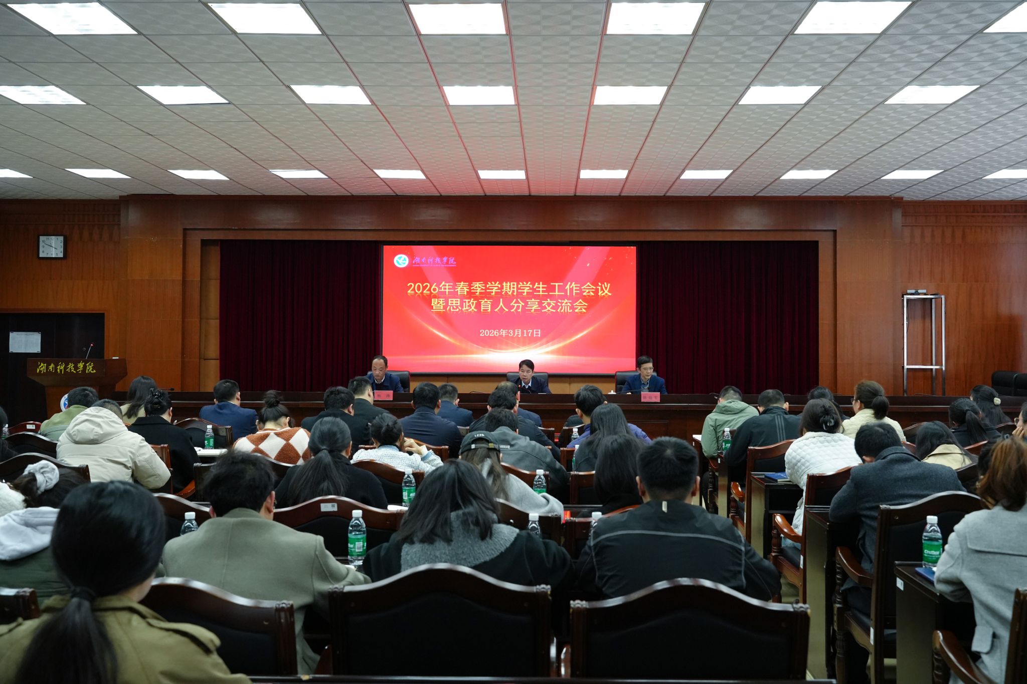 本网讯(通讯员 赵江南)3月17日,我校2026年春季学期学生工作会议暨思政育人分享交流会在行政楼召开。校党委委员、副校长李常健,校党委委员、纪委书记陈灿军,校党委副书记、组织部部长杨涛出席会议。会议由杨涛主持。