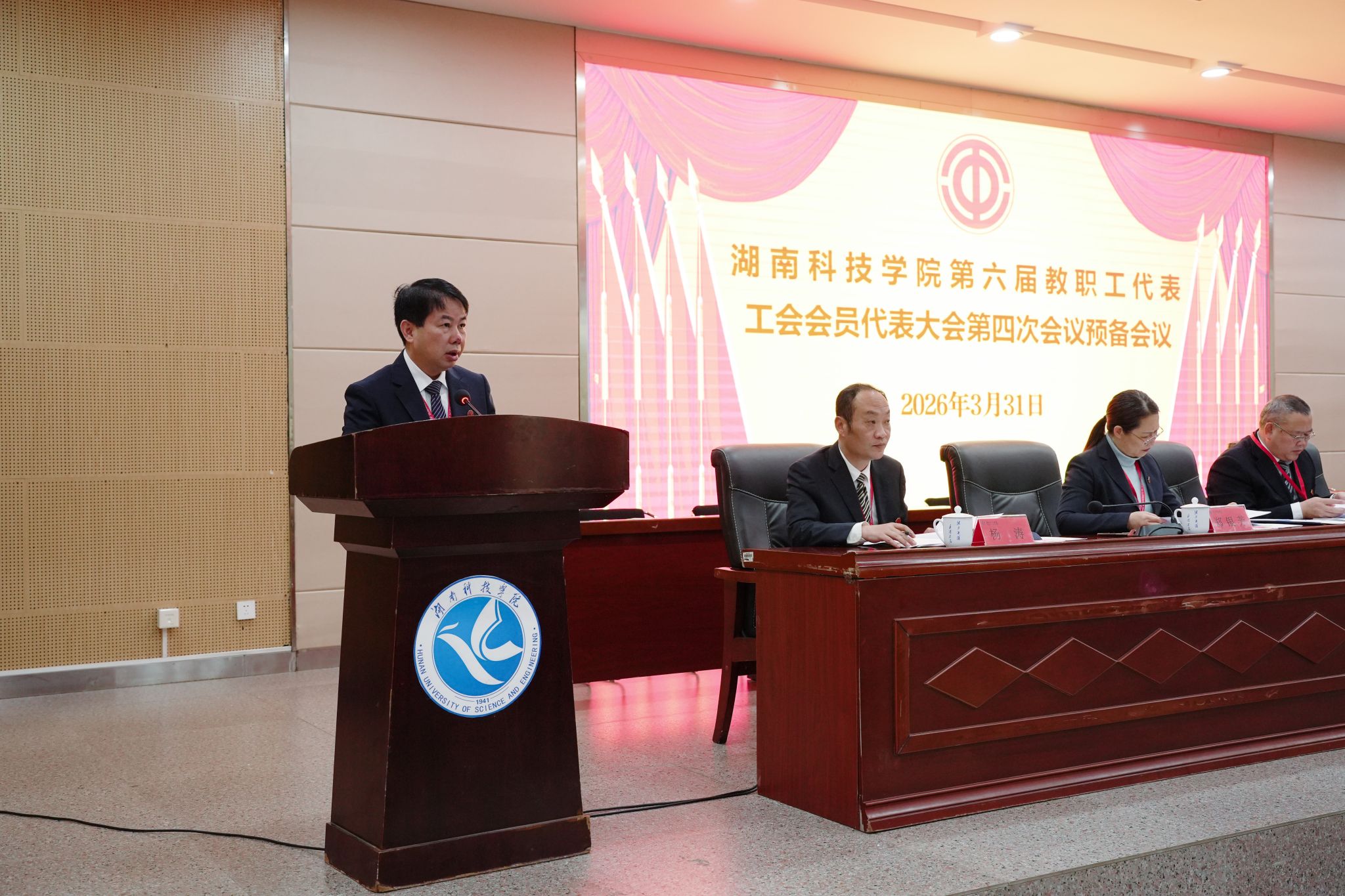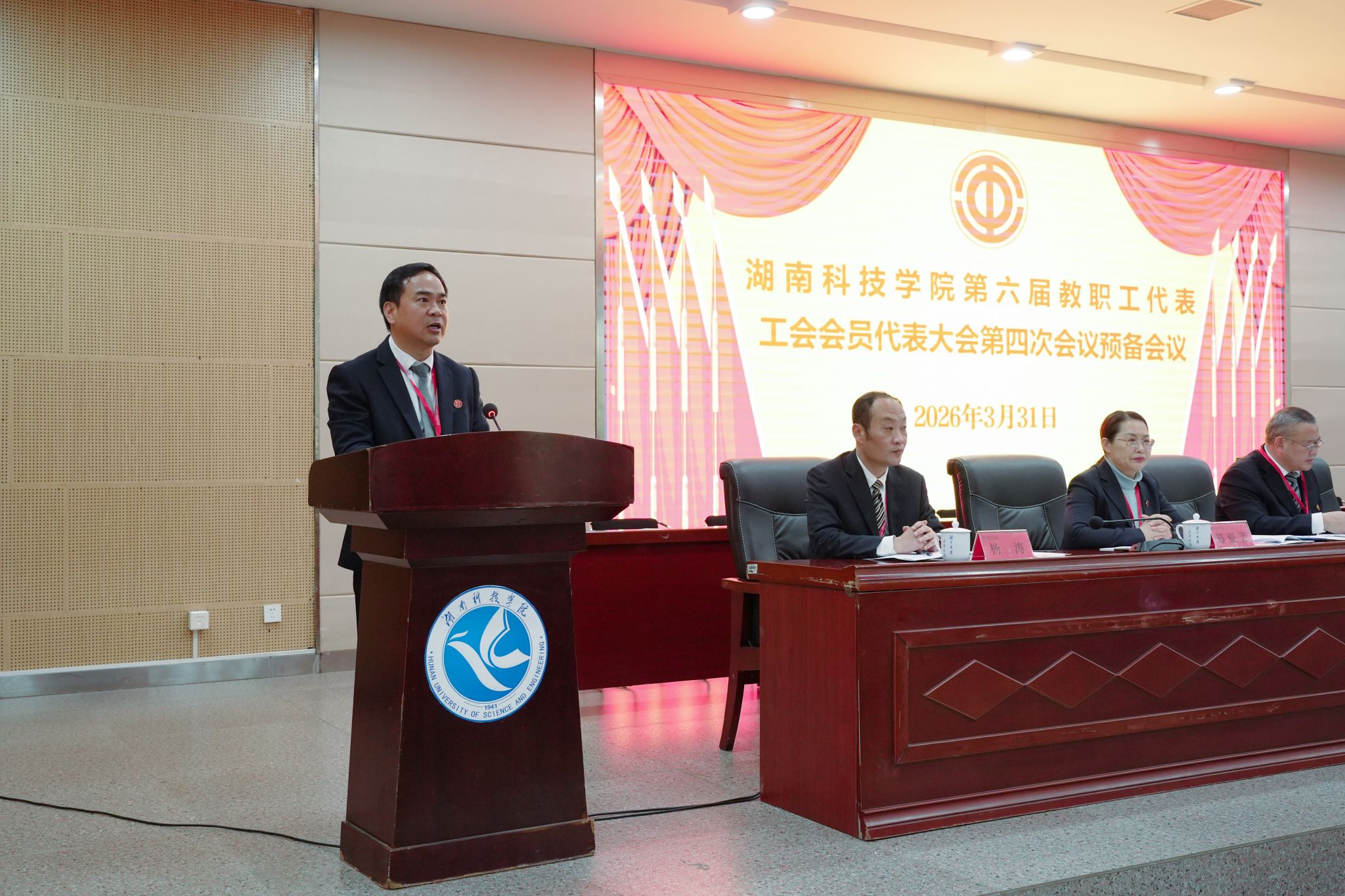 下午,为期一天的第六届教职工代表、工会会员代表大会第四次会议圆满完成各项议程,在潇湘大讲堂闭幕。会议通过学校工作报告、工会工作报告、“十五五”事业改革与发展规划纲要、2025年财务预算执行情况和2026年财务预算安排报告、工会经费审查工作报告。